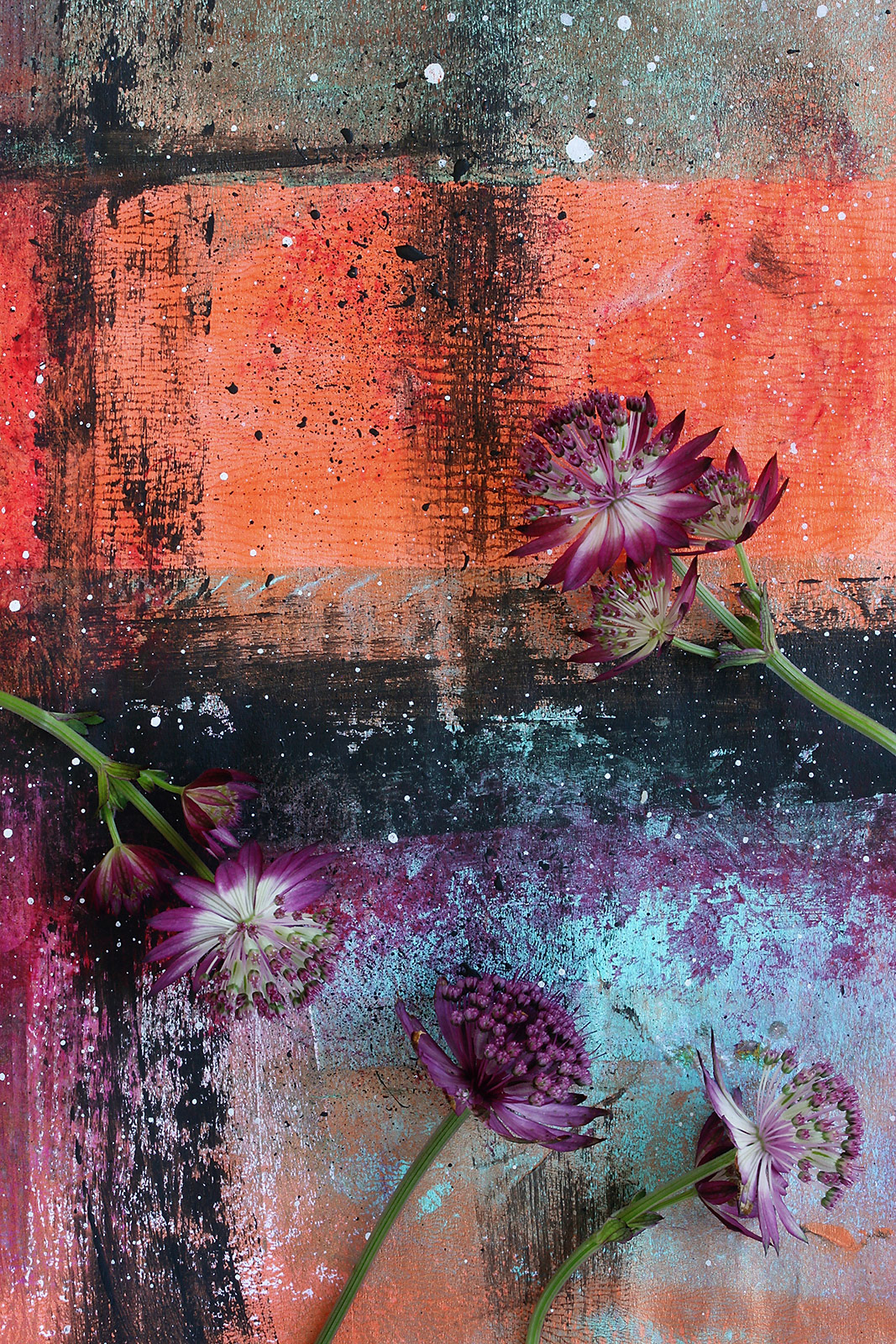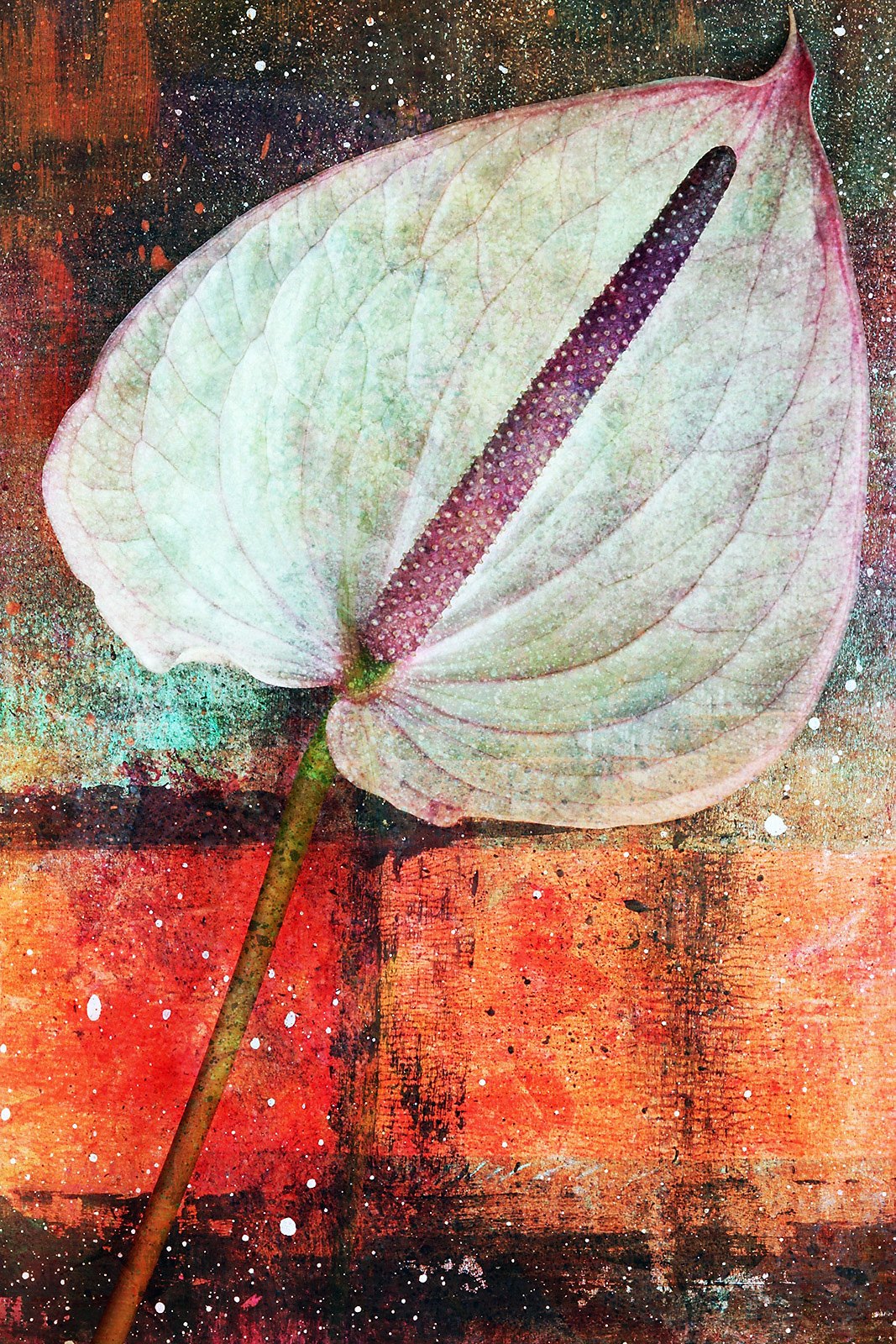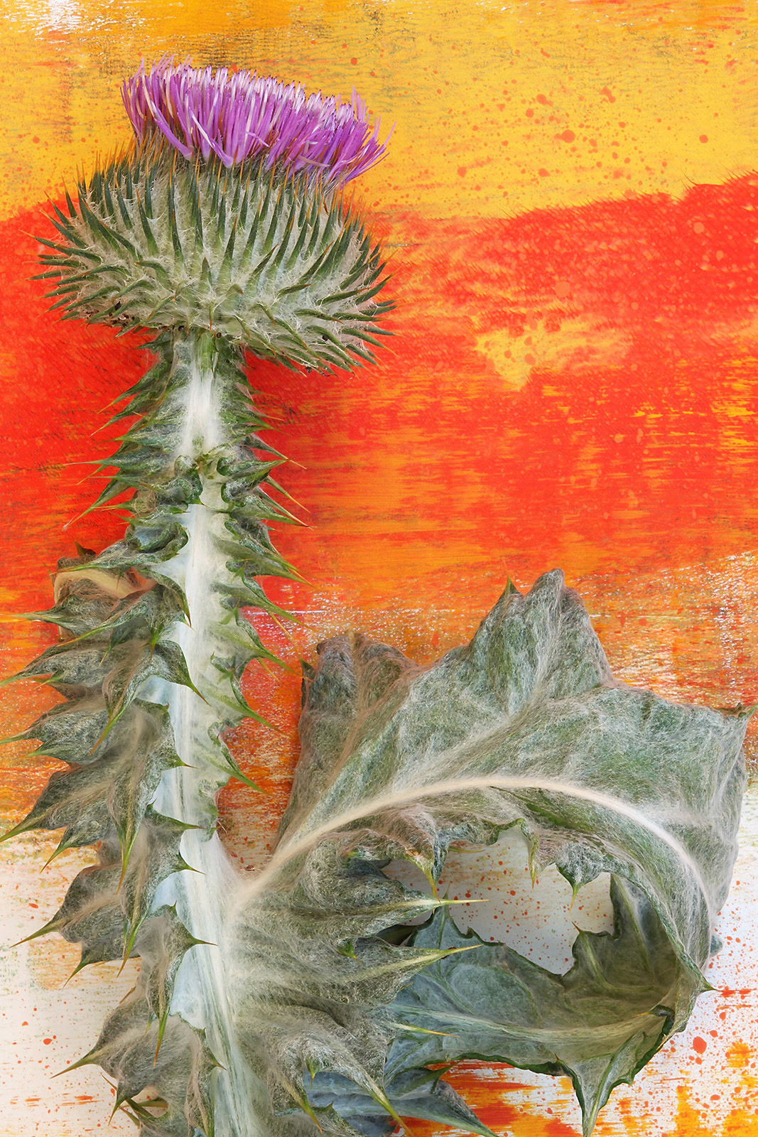This series of images was inspired by old botanical prints and utilise my acrylic mono printed papers as backgrounds.
