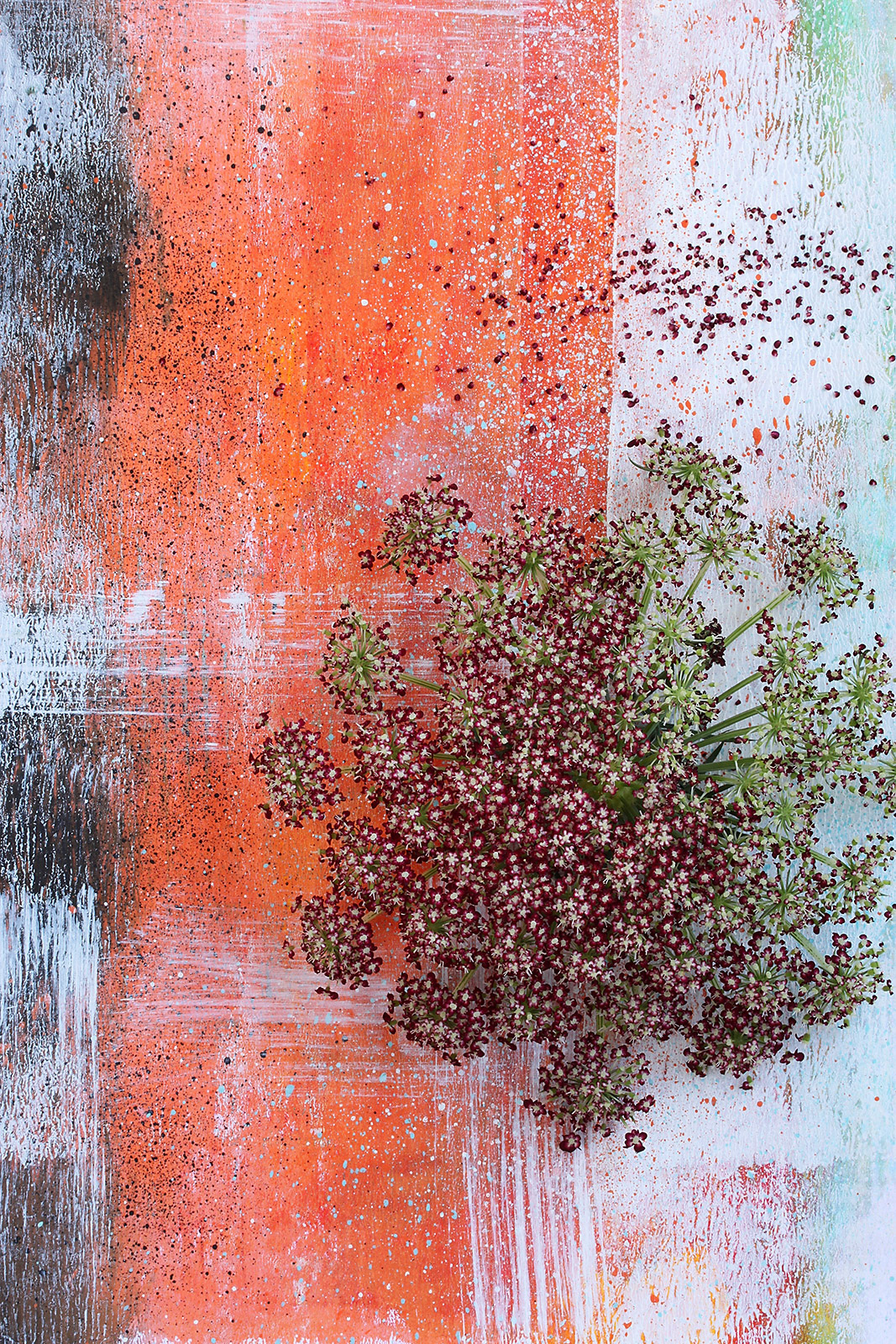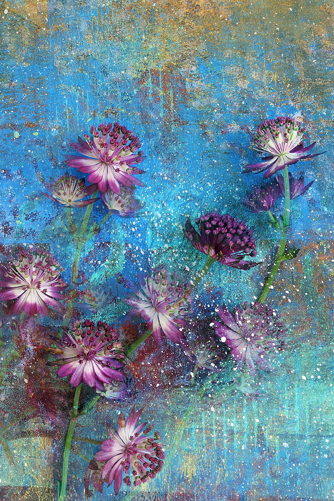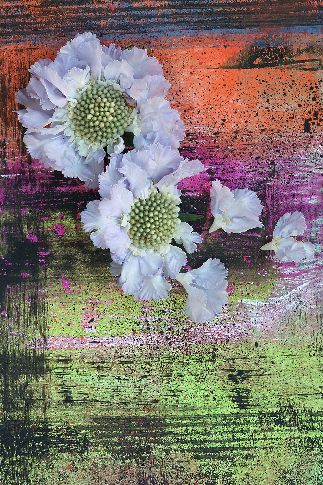 This series of images was inspired by old botanical prints and utilise my acrylic mono printed papers as backgrounds.