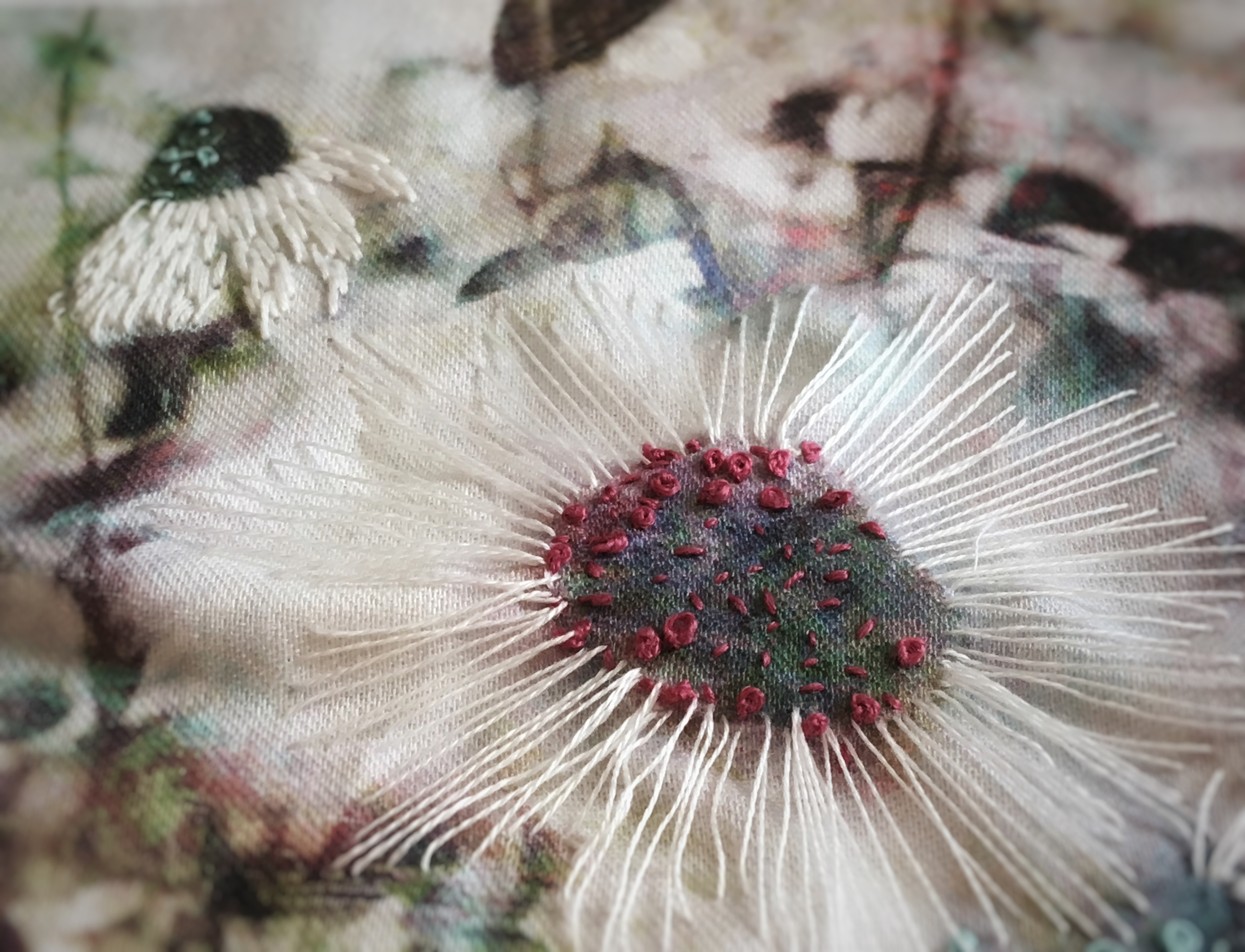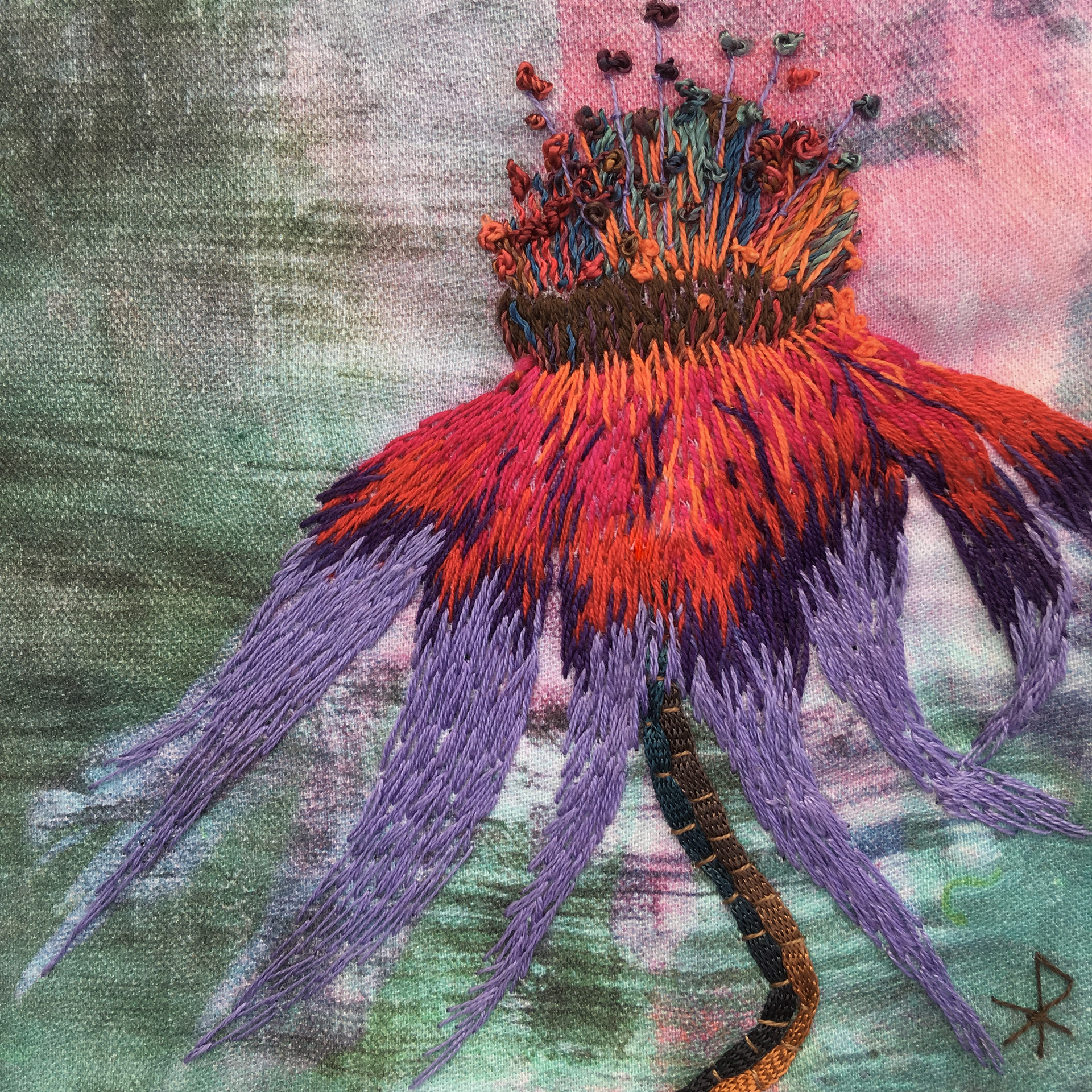 These embroidered images are hand-stitched on digitally printed cotton fabric. All designs are either based on my photographs or monoprints.